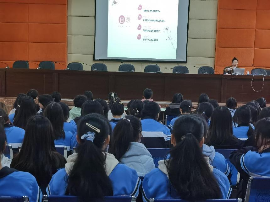 四川大海星辰健康咨询有限公司心理专家张云楚老师从青少年的角度出发,用浅显易懂的语言为女生讲解青春期的生理变化,并从青春期的心理发展变化特点、异性交往的尺度、青春期自我保护等方面进行了具体阐述。此次讲座,为引导女生正确认识自己青春期的生理、心理变化,正确处理异性间的交往,奠定良好的心理基础。