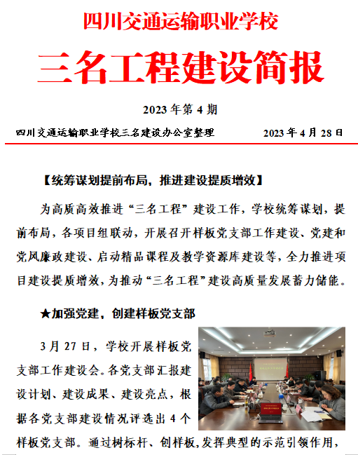 三名工程建设简报第4期-四川交通运输职业学校-官方网站